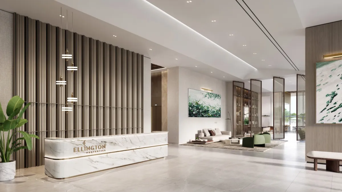 The lobby unfolds as a serene threshold, a curated space where warmth meets refinement. Porcelain floors, textured walls, and thoughtfully selected art pieces speak to a quiet sophistication.